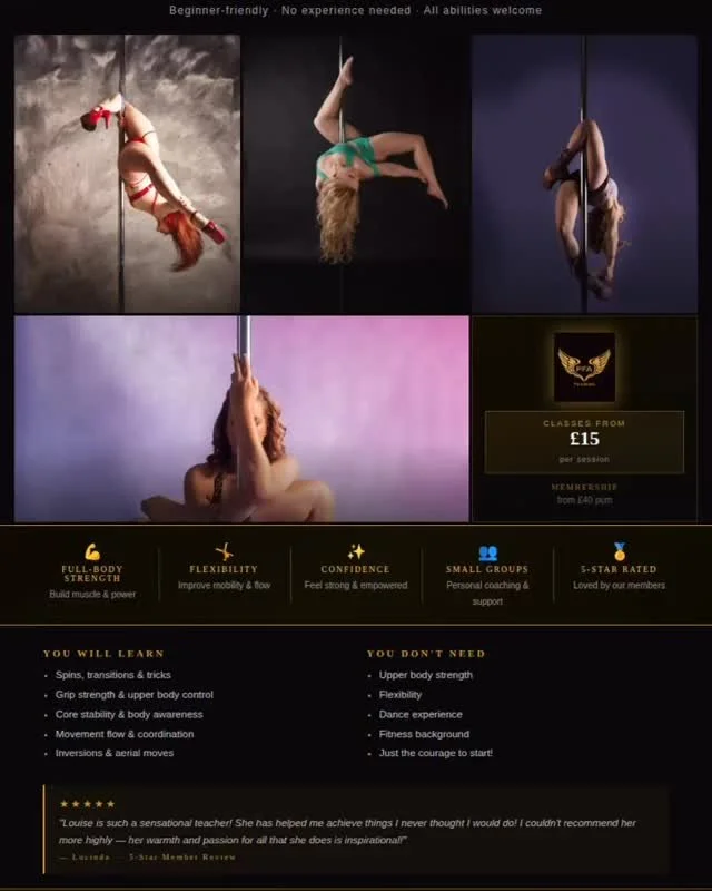 This class emphasizes bringing artistry and expression to your movement whilst building body confidence and finding your inner ‘sexy’. It is designed around learning dance routines using the floor and bottom of the pole. As with any form of dance, Burlesque will help improve your aerobic fitness as well as your muscle tone and strength. Please be aware PolEsque is bought to you from Pole Fit Angels and is not included in the Perki class packs